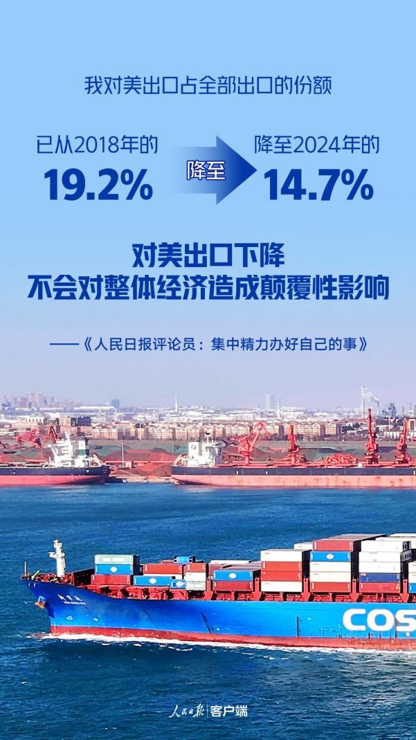 但要看到,中國是超大規(guī)模經(jīng)濟(jì)體,面對美國的關(guān)稅霸凌沖擊,我們具有強(qiáng)大的抗壓能力。近年來我們積極構(gòu)建多元化市場,對美市場依賴已在下降。我對美出口占全部出口的份額已從2018年的19.2%降至2024年的14.7%,對美出口下降不會對整體經(jīng)濟(jì)造成顛覆性影響。美國內(nèi)不少產(chǎn)品對我依存度較高。當(dāng)前美國不僅在很多消費(fèi)品上離不開中國,很多投資品和中間產(chǎn)品也需要從中國進(jìn)口,有若干品類依存度超過50%,短期內(nèi)在國際市場上很難找到替代來源。在全球產(chǎn)供鏈深度交融的大背景下,中美貿(mào)易不可能完全中斷。新興市場經(jīng)貿(mào)合作潛力巨大,日益成為我穩(wěn)外貿(mào)的重要基礎(chǔ)。我國是全球150多個國家和地區(qū)的主要貿(mào)易伙伴,2018年以來,我對東盟出口占比由12.8%提升到16.4%,對共建“一帶一路”國家出口占比由38.7%提升到47.8%,且保持較快增長勢頭。國內(nèi)市場緩沖空間廣闊,是重要的大后方。據(jù)統(tǒng)計(jì),2024年我有出口實(shí)績的數(shù)十萬家企業(yè)中,接近85%的企業(yè)同時開展內(nèi)銷業(yè)務(wù),內(nèi)銷金額占銷售總額的近75%。國家正加快打通“出口轉(zhuǎn)內(nèi)銷”政策堵點(diǎn)、卡點(diǎn),擴(kuò)內(nèi)需各項(xiàng)政策也在加力擴(kuò)圍,內(nèi)需市場的容納效應(yīng)將日益顯現(xiàn)。
